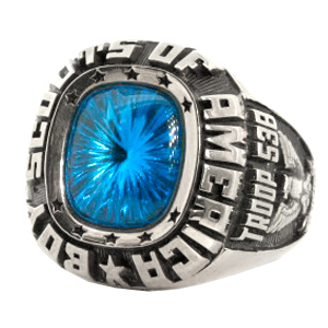 Personalize the Boy Scout Patriot ring in siladium with your choice of stone color, side emblems and engravings. The simulated stone is 12mm x 10mm. This ring is officially licensed by the Boy Scouts of America. Siladium is a fine jeweler's stainless steel with a bright silver tone. Contains 12% nickel. The Patriot ring is 21.4mm across the widest part on top; 30mm from top of stone to bottom of ring shank. Palm width: 6.4mm. Handcrafted in the USA. Enjoy ArtCarved's limited lifetime warranty.