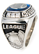 Celebrate your fantasy baseball championship with the Dynasty ring in white lazon. Personalize the ring with your choice of stone color, league name, the year you won, and more. Made in the USA by Gold Lance.