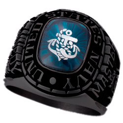 The Independence US Navy ring is handcrafted by Balfour. Personalize the wording around the stone, stone color, side emblems and engravings. The oblong stone is 12mm x 10mm. This United States Navy ring is made in solid eclipse Valadium, a fine jeweler's stainless steel with a bold black tone. Contains 12% nickel.