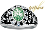 The Alecto class ring features a cubic zirconia bezel and oval 8mm x 6mm stone, and allows many opportunities for personalization. Personalize this ring with your choice of activity, school mascot, name and graduation year. Solid back ring is handcrafted in the USA by Gold Lance.