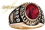The Explorer is a medium size class ring and features a 11mm x 9mm oval simulated stone. Solid back ring is handcrafted in the USA by Gold Lance. Personalize it with your choice of favorite activity, school mascot, name and graduation year. This design is available with year date with diamonds.