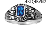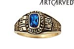 The girls' Minuet class ring is a medium designer ring style from ArtCarved. The ring features a 6mm x 4mm oblong simulated stone. Personalize your stone style and color, side emblems and engravings. Ring top width: 9.8mm, palm width: 2.0mm. Enjoy ArtCarved's limited lifetime warranty.