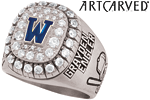 The boys' large Monogram All-American class ring features a single letter on top surrounded by cubic zirconia accents. Solid back ring is handcrafted by ArtCarved. Ring top width: 18.7mm, palm width: 6.8mm.