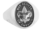 The Boy Scouts of America signet ring features an oval top with fleur de lis and antique finish. Plain smooth shanks. Top dimensions: 15mm x 12mm. Personalize this ring with inside personal engraving. This ring is officially licensed by the Boy Scouts of America. Handcrafted to order. Made in the USA.