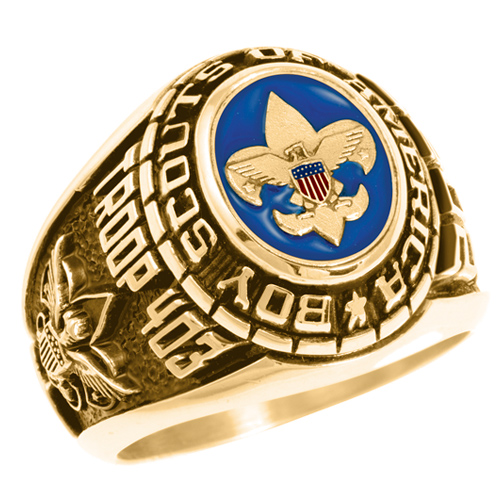 Personalize the Boy Scouts of America Paragon ring with your choice of stone color, side emblems and engravings. The enamel top is 12mm x 10mm. Ring top width: 19mm, palm width: 7.2mm. This ring is officially licensed by the Boy Scouts of America. Enjoy ArtCarved's limited lifetime warranty.