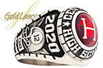 The Insignia class ring features a 12mm x 10mm oval simulated stone. Made in USA by Gold Lance. Personalize it with your choice of favorite activity, school mascot, name and graduation year. This design is available with year date with diamonds.
