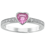 The Heart Stacking ring is set with a 5mm x 5mm heart shaped gemstone and 12 x .5pt cubic zirconia accent stones. The ring is 2.5mm at the top and tapers to 2.2mm. This style is available in whole and half finger sizes, 4-10. Standard fit. Import.