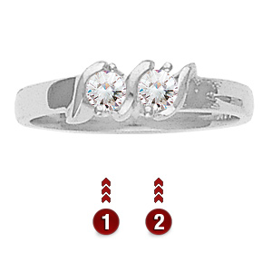 The Rewards of Romance mother's ring has two simulated round birthstones and is made of 14k white gold. Stone size: 3mm. The ring measures about 4.5mm at the top center. Standard fit. Made in USA.