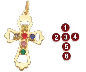 Family Cross Pendant with 6 simulated birthstones in 10kt white gold