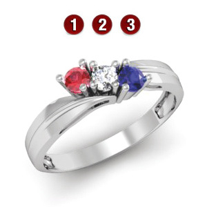 The 14kt white gold Embracing Arms mother's ring features three genuine 3mm round gemstones of your choice. Approximate weight: 4.0 grams. Made in the USA.