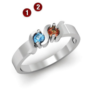 Rounds of Romance Ring with 2 simulated birthstones in 14kt white gold
