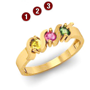 Rounds of Romance Ring with 3 simulated birthstones in 14kt yellow gold
