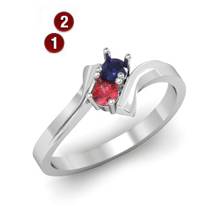 Adoring Child Ring with 2 genuine birthstones in 14kt white gold