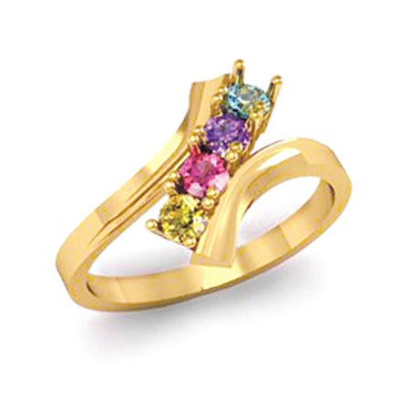 Adoring Child Ring with 4 genuine birthstones in 14kt yellow gold