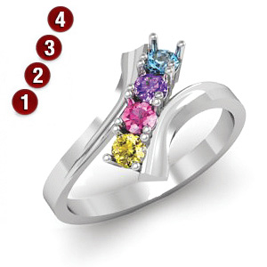 Adoring Child Ring with 4 genuine birthstones in 14kt white gold