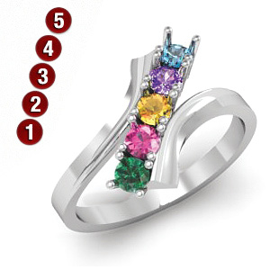 Adoring Child Ring with 5 simulated birthstones in 14kt white gold