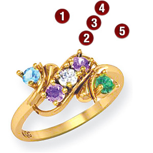 The 14kt yellow gold Family Flourish mother's ring is set with five genuine 2.75mm round gemstones of your choice. Made in USA.