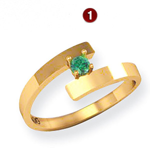 Choose polished 14k yellow or white gold. This ring offers stone personalization for 1-5 round gemstones. Each gemstone is 2.5mm in diameter. Choose simulated or genuine gemstones. Gold content weighs 3.75 grams. Made in USA.