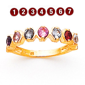 Polished 14k yellow gold. This ring offers stone personalization for 1-7 round gemstones. Each gemstone is 2.5mm in diameter. Choose simulated or genuine gemstones. Gold content weighs 1.6 to 2.7 grams. Made in USA.
