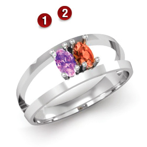 Unify mother's ring is made of polished 14kt white gold. This ring offers two 5mm x 3mm oval genuine gemstones of your choice. Split shank. Gold content weighs 3.2 grams. Made in USA.