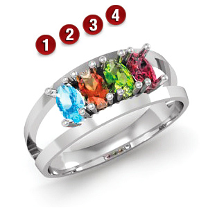 Unify mother's ring is made of polished 14kt white gold. This ring offers four 5mm x 3mm oval genuine gemstones of your choice. Split shank. Made in USA.