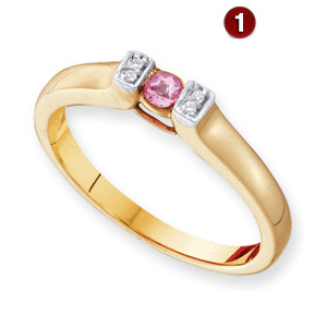 Choose polished 14k yellow or white gold. This ring offers stone personalization for 1-4 round gemstones. Each gemstone is 3.0mm in diameter. Choose simulated or genuine gemstones. Genuine diamond accents. Made in USA. Weight: 2.38 grams.