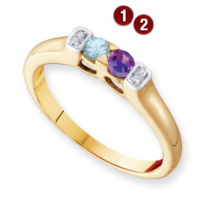 Choose polished 14k yellow or white gold. This ring offers stone personalization for 1-4 round gemstones. Each gemstone is 3.0mm in diameter. Choose simulated or genuine gemstones. Genuine diamond accents. Made in USA. Weight: 2.41 grams.