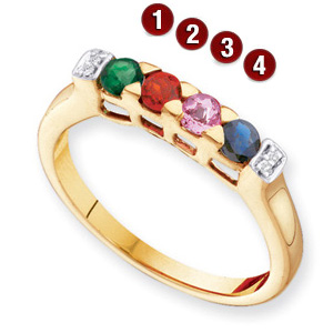 Choose polished 14k yellow or white gold. This ring offers stone personalization for 1-4 round gemstones. Each gemstone is 3.0mm in diameter. Choose simulated or genuine gemstones. Genuine diamond accents. Made in USA. Weight: 2.46 grams.