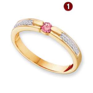 Choose polished 14k white or yellow gold only. This ring offers stone personalization for 1-4 round gemstones. Each gemstone is 3.0mm in diameter. Shared prongs. Choose simulated or genuine gemstones. Made in USA. Both genuine and simulated stone rings have .05 ct tw diamond accent stones [ I1 clarity, G-I color].