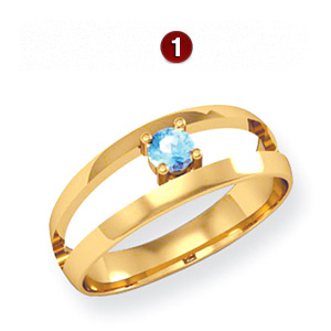 Make an elegant statement with this 14kt gold ring. This ring features personalization for 1 birthstones. Each prong-set gemstone is 3.5mm in diameter. It is available with simulated or genuine birthstones. Weight: 3.26 grams.