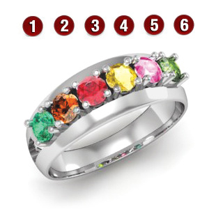 Make an elegant statement with this 14kt gold ring. This ring features personalization for 6 birthstones. Each prong-set gemstone is 3.5mm in diameter. It is available with simulated or genuine birthstones. Weight: 4.26 grams.
