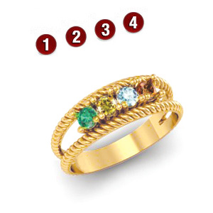 Satin Rope Ring with 4 simulated birthstones in 14kt yellow gold