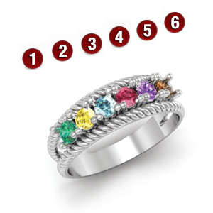 Satin Rope Ring with 6 genuine birthstones in 14kt white gold