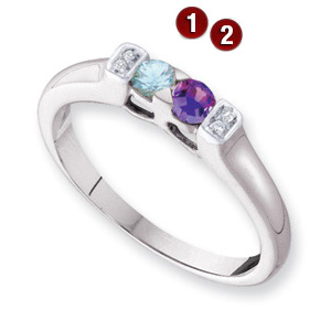 Choose polished 14k yellow or white gold. This ring offers stone personalization for 1-4 round gemstones. Each gemstone is 3.0mm in diameter. Choose simulated or genuine gemstones. Genuine diamond accents. Made in USA. Weight: 2.41 grams.