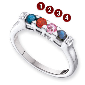 Choose polished 14k yellow or white gold. This ring offers stone personalization for 1-4 round gemstones. Each gemstone is 3.0mm in diameter. Choose simulated or genuine gemstones. Genuine diamond accents. Made in USA. Weight: 2.46 grams.