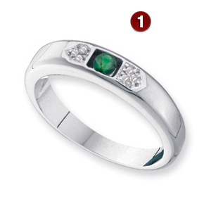 Choose polished 14k white or yellow gold only. This ring offers stone personalization for 1-4 round gemstones. Each gemstone is 2.75mm in diameter. Shared prongs. Choose simulated or genuine gemstones. Made in USA. Both genuine and simulated stone rings have diamond accent stones [.03 ct tw, I1 clarity, G-I color]. Weight: 3 grams.