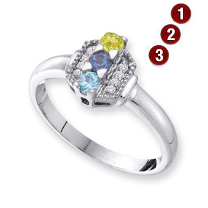 Lovely Memories with 3 simulated birthstones in 14kt white gold