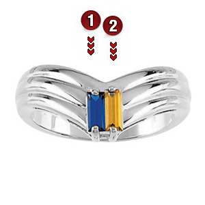 Make an elegant statement with this family ring. Each prong-set baguette shaped gemstone is 5mm by 2mm. It is available with simulated or genuine birthstones. Sterling silver only.