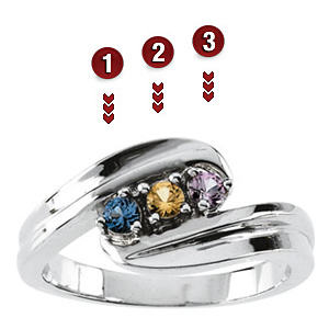 Embracing Arms Sterling Silver Mother's Ring with 3 genuine birthstones