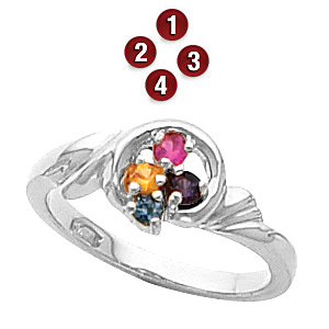 Magic Circle Sterling Silver Mother's Ring with 4 simulated birthstones