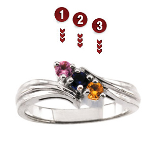 Sterling Silver Endearing Ring with 3 simulated birthstones