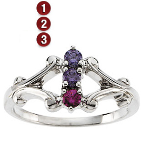 Heritage Sterling Silver Mother's Ring with 3 genuine birthstones
