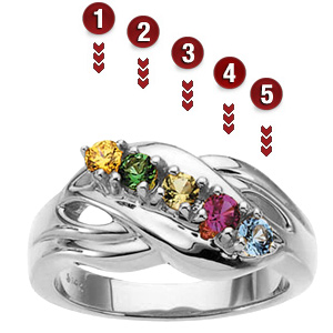 Make an elegant statement with this family ring. Each prong-set gemstone is 3mm in diameter. It is available with simulated or genuine birthstones. Sterling silver only.