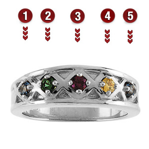 Make an elegant statement with this family ring. Each prong-set gemstone is 3mm in diameter. It is available with simulated or genuine birthstones. Sterling silver only.