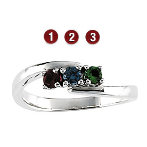 Delicate Arms Sterling Silver Mother's Ring with 3 genuine birthstones