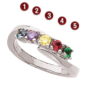 Delicate Arms Sterling Silver Mother's Ring with 5 simulated birthstones