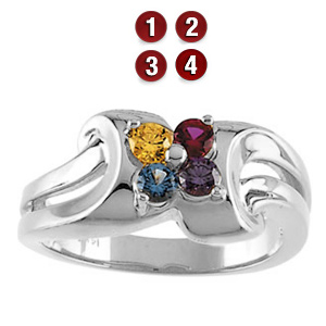 Make an elegant statement with this family ring. Each prong-set gemstone is 3mm in diameter. It is available with simulated or genuine birthstones. Sterling silver only.