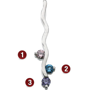 Squiggle Sterling Silver Mother's Pendant with 3 genuine birthstones