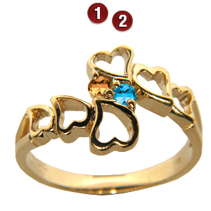 Family Hearts Mother's Ring with 2 simulated birthstones in 10kt yellow gold