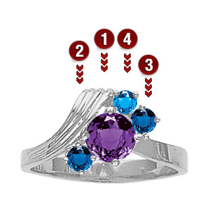 The Birthstone Surround ring varys in width. A ring with 4 stones measures about 8.5 mm at the widest top center measurement. This ring accepts 2-9 stones. The large stone is 5.0mm round and the smaller stones 2.5mm round.